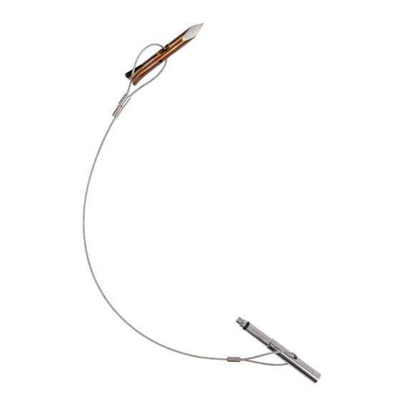 The tip hardcore hunters trust when it counts.  This spearhead has a razor-sharp tri-cut tip, 3 inches 17-4 heat-treated stainless steel point, 1/16″ stainless steel braided cable, and an injector designed to deploy as soon as either rear barb meets resistance.  It also has an open crimp to place over the point for easy fish removal.  This all means that everything about the Double Barb Tri-Cut Slip Tip is designed to bring your catch home.