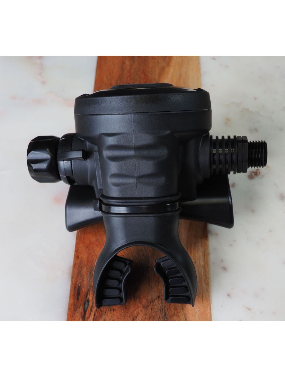 The second stage is a pneumatically balanced and adjustable (Cracking effort, or how much effort it takes to start delivery of gas when you inhale) the second stage with a dive/pre-dive selector that reduces free flow when the second stage is not in your mouth, such as when used as an octopus/safe second/alternative air source (or whatever your instructor and textbook told you to call it)