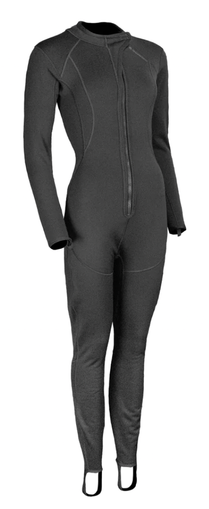 The Titanium 2 Front Zip Suit features T2 material throughout and an easy-entry two-way front zipper. This suit is ideal for diving and snorkelling and makes a great layering undergarment to make dry and wetsuits even warmer. Available in male and female sizes.