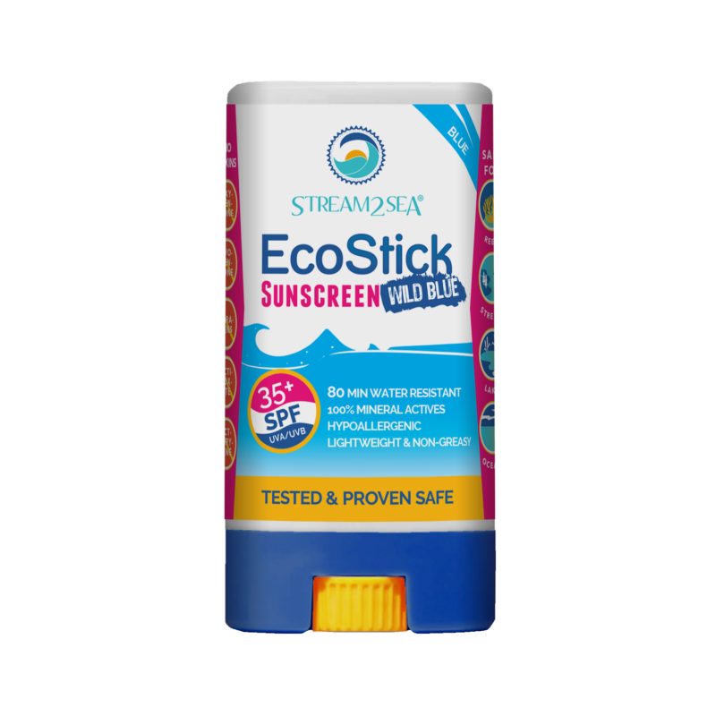 EcoStick WILD colors are plant-based, fragrance-free, safe, and FUN for the whole family! EcoStick Sunscreen Wild Blue for Face and Body SPF 35+ is a high-performance mineral-based sunscreen that protects your body while preserving the ecosystems you love.