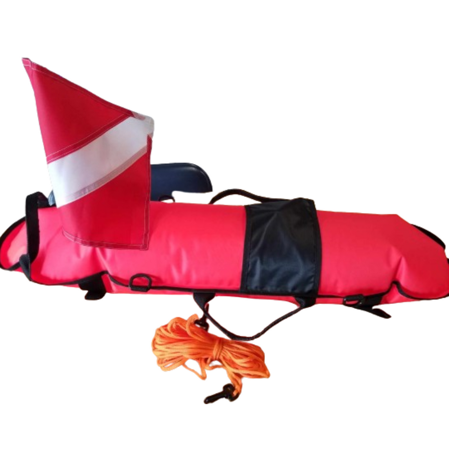 This Dive Float with Flag is the perfect companion for divers, featuring a locally recognized red flag with a white diagonal stripe. Made from ultra-durable material, it is equipped to withstand two full-grown adults! Three handles and a heavy-duty stitched attachment point make this a must-have for safe and secure diving.